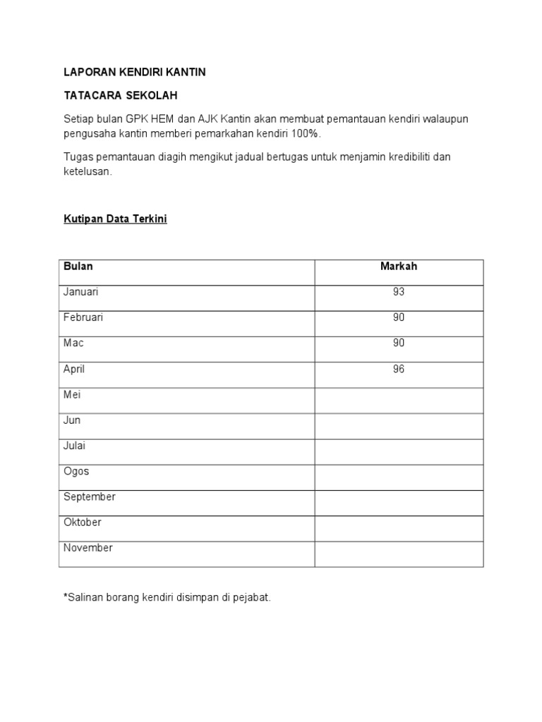 Borang Laporan Harian Kendiri Kantin - Download Documents