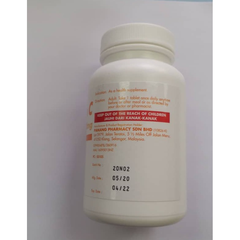 READY STOCK: PAHANG PHARMACY VITAMIN C 1000mG (100 TABLETS